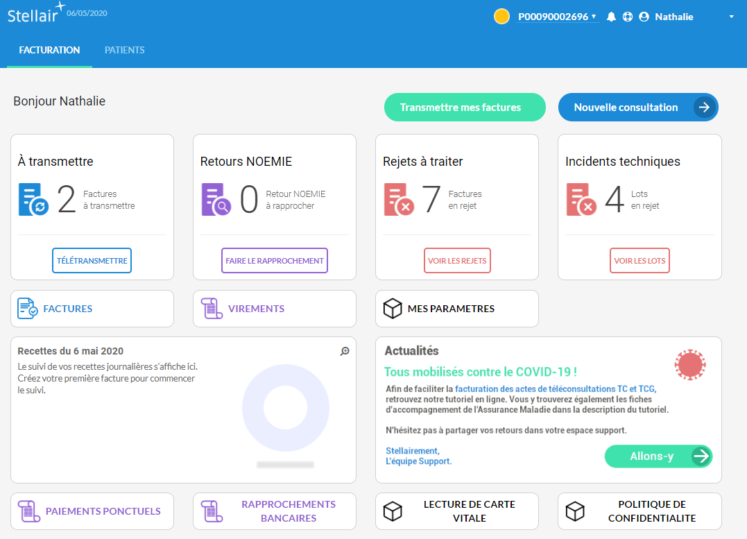 Une fois signées, les FSE peuvent être revues. Pour cela, via le tableau de bord, cliquez sur « Factures ».