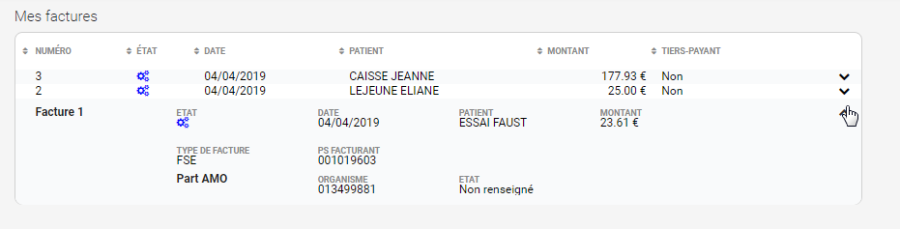 Pour avoir les détails complets ainsi que les actions possibles, cliquer sur la ligne de la FSE souhaitée :