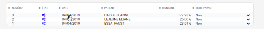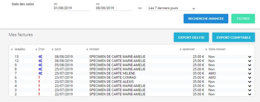 Une liste apparaît avec toutes les factures réalisées sur la période donnée :