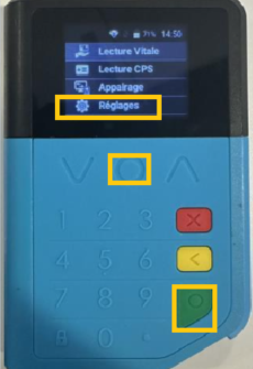 Sélectionnez Réglages, puis appuyez sur le bouton vert pour confirmer.