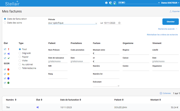 Via le tableau de bord Stellair, cliquez sur Consulter la liste dans la rubrique Mes factures.