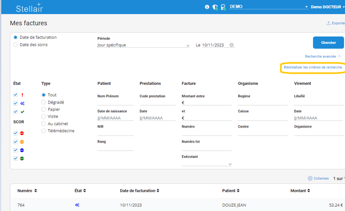 Cliquez sur Réinitialiser les critères de recherche pour réinitialiser les champs de recherche.