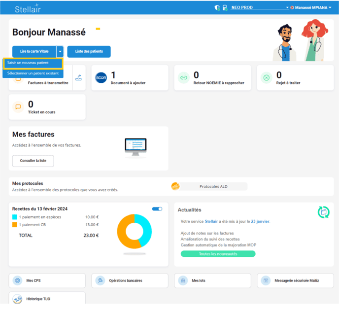 Stellair Integral vous donne la possibilité de faire de feuille de soins même pour les patients qui n'ont pas de NIR.