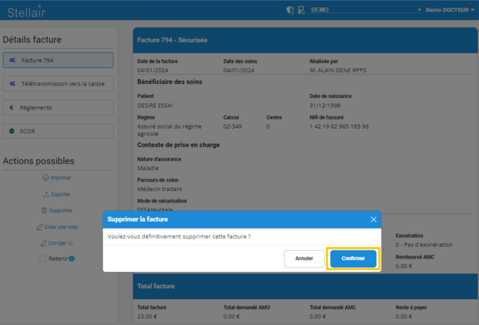 Afin de supprimer une facture sécurisée qui n'a pas encore été télétransmise, suivez ces étapes simples :