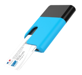 - Un câble USB permettant de recharger le lecteur en le connectant au poste de travail.