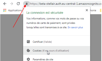a. Exemple sur Chrome : cliquer sur le cadenas, et sur « Cookies »