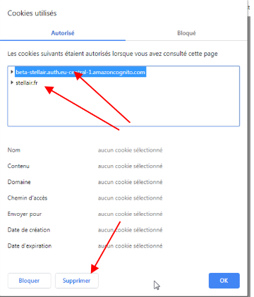 - Taper l’URL d’utilisation (ex : https://fse.stellair.fr) et vider les cookies.